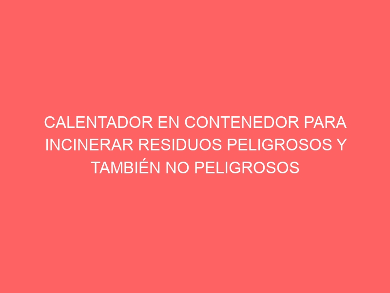 QUEMADOR EN CONTENEDOR PARA INCINERAR RESIDUOS PELIGROSOS Y NO PELIGROSOS (AMBOS DOMÉSTICOS ADEMÁS DE INDUSTRIALES) A UN COSTE MÍNIMO DE 300KG / HORA CON EL