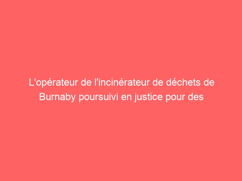 Le Greater Vancouver Sewerage and Drainage District poursuit Maxxam Analytics International Corp.et Covanta Burnaby Renewable Energy ULC pour avoir prétendument omis de tester correctement les échantillons de cendres volantes de l’installation de valorisation énergétique du district à Burnaby.