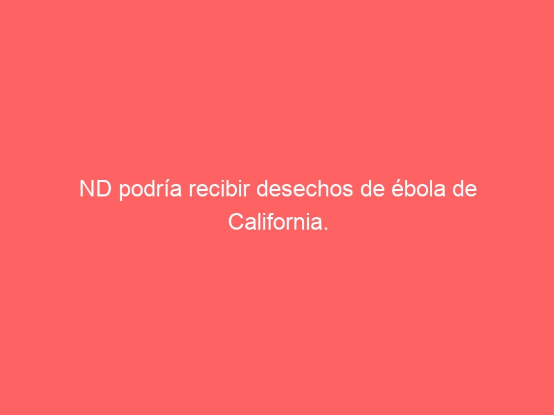 por: http://bismarcktribune.com/news/state-and-regional/nd-could-receive-ebola-waste-from-calif/article_10e0e242-5f2c-11e4-8ff8-8ba8bab48ce3.html