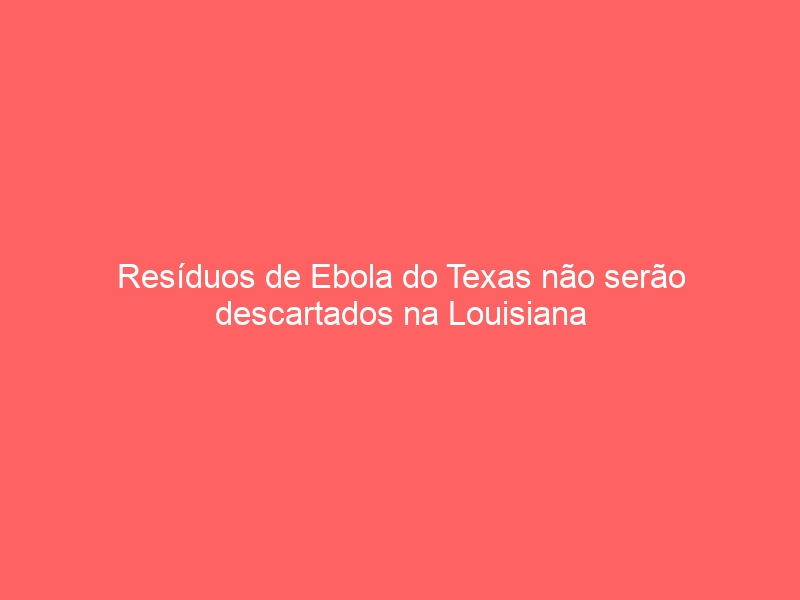 Na sexta-feira, o procurador-geral Buddy Caldwell anunciou que o estado da Louisiana chegou a um acordo com a incineradora Veolia Environmental Services do Texas e o aterro de resíduos perigosos da Louisiana Chemical Waste Management para garantir que as cinzas do incinerador associadas à recente ocorrência do vírus Ebola de Dallas não sejam transportadas ou descartadas na Louisiana ,.
